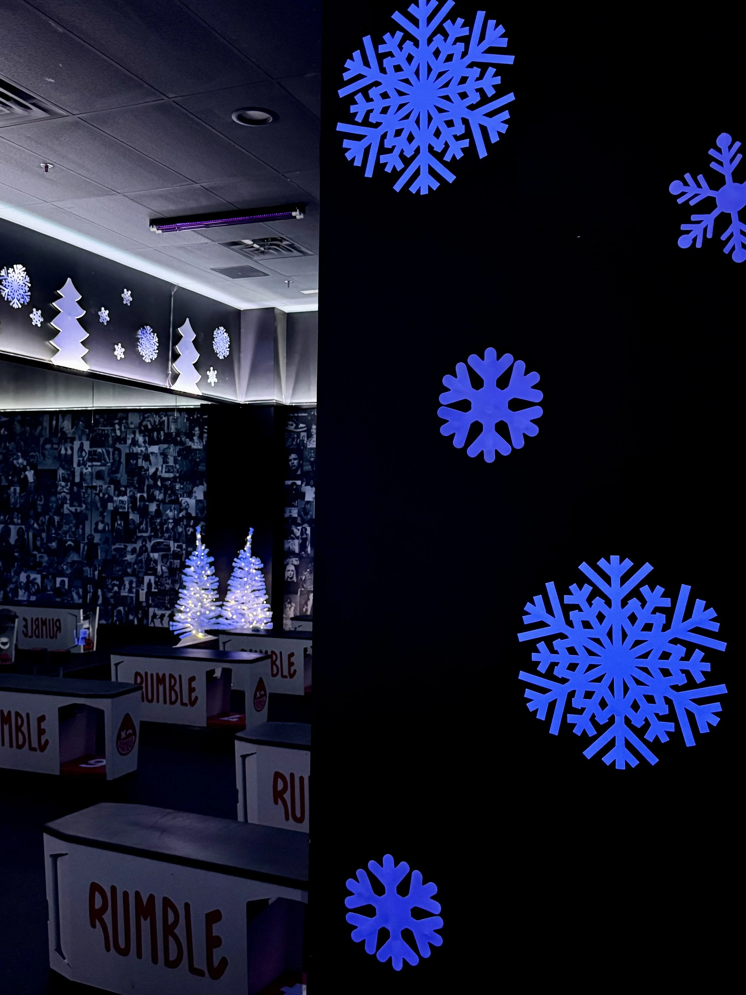 We transformed Rumble Boxing’s Hoboken and Jersey City studios into a series of festive micro-worlds, styling different corners as immersive holiday vignettes.
