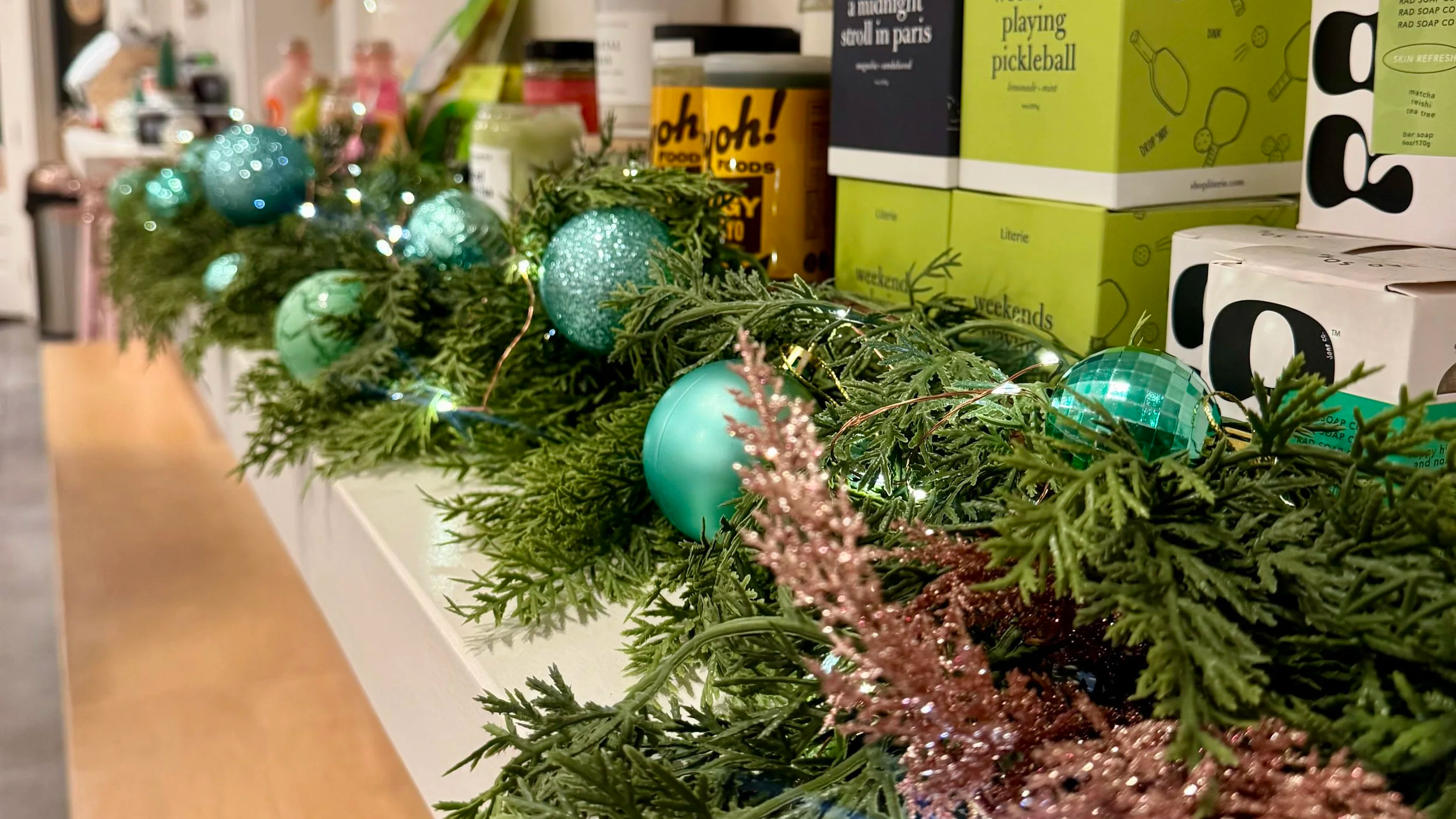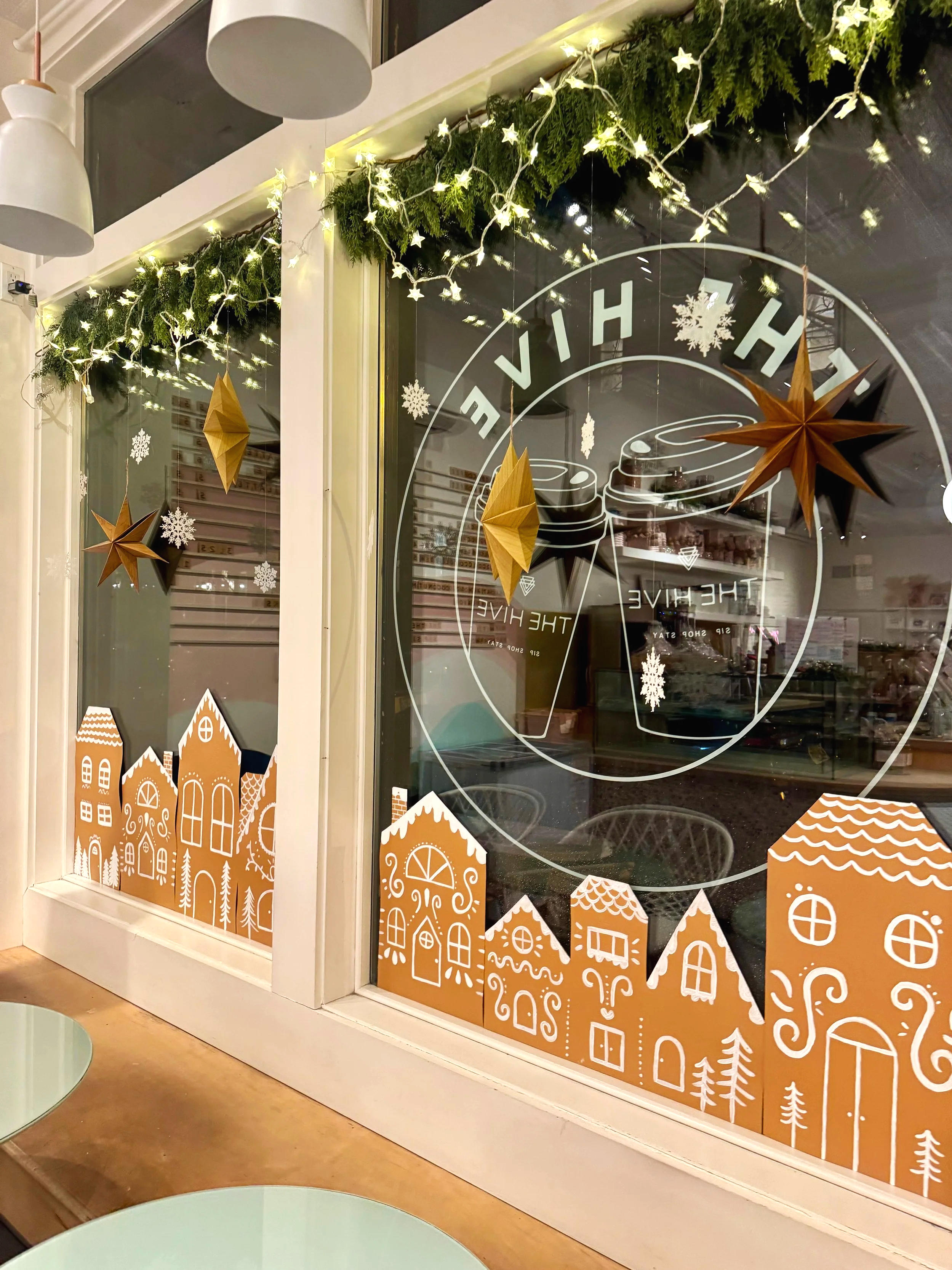 Beloved local café The Hive is known for their cinnamon rolls and baked goods people line up for — so for the holidays, we designed décor that felt like it came straight from their ovens.